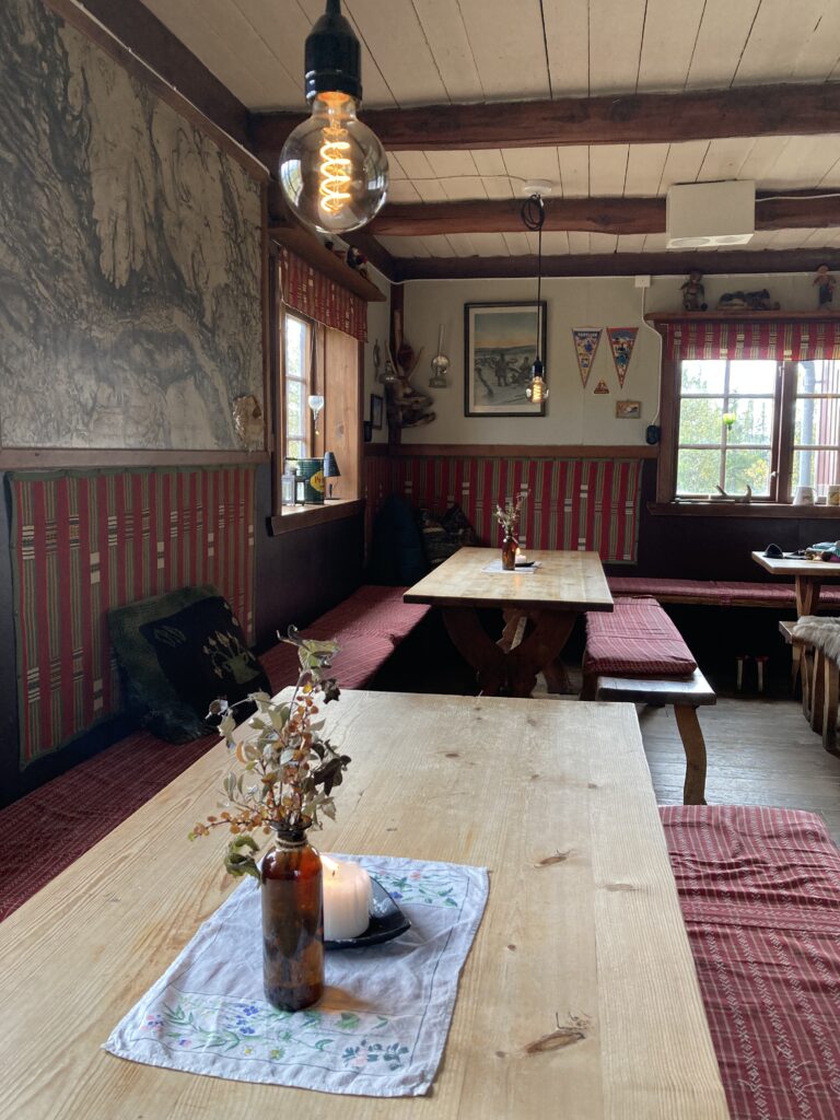 Vi vandrade ca 10km på detta sättet, mycket trevligt. På vägen gjorde vi ett stop vid en våffelstuga där vi drack kaffe och åt våfflor. Det hela påminde lite om mina asfalts-promenader mellan olika fikaställen – men med mycket finare utsikt och friskare luft! Jag var väldigt nöjd med denna första vandringsresa.